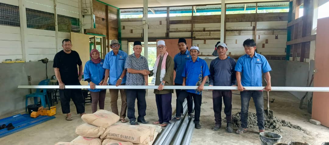 Pengerusi Surau, Tuan Hj Dulamin Hj Sulaiman bersama Timbalan, Sarbi Bin Derak mengucapkan jutaan terimakasih atas sumbangan Dr Jeffrey yang mereka terima dalam bentuk besi, zink dan simen.