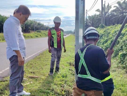 President of the Sabah People’s Hope Party (PHRS), Tan Sri Liew Yun Fah, stated that the installation work began last week and has now reached the intersection near Sekolah Menengah Kebangsaan (SMK) Abaka, Merotai.