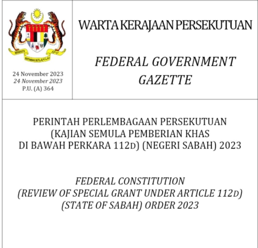 Under the *Federal Government Gazette P.U. (A) 364/2023*, the law states: