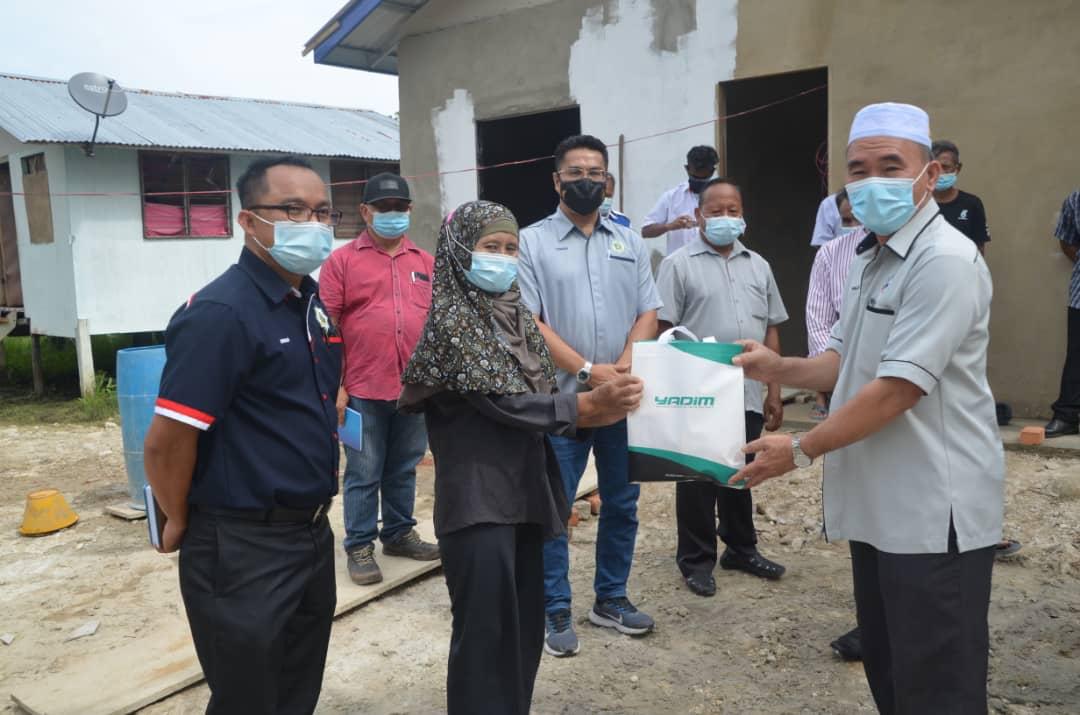 BEAUFORT: Ahli Dewan Undangan Negeri (ADUN) Lumadan, Ruslan Muharam (kanan) menyerahkan sumbangan kepada seorang ibu tunggal, Junaidah Jafar yang bakal memiliki rumah baharu menerusi Program Rumah Teratak Prihatin di kampung Lubok di Dun Lumadan.