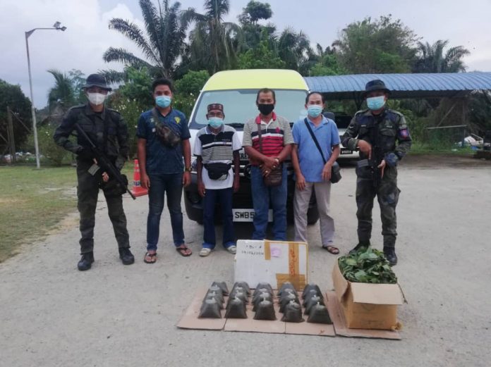 KALABAKAN: Kawasan Keselamatan Khas Pantai Timur Sabah (ESSCOM) dengan kerjasama Batalion 14, Pasukan Gerakan Am (PGA) telah menahan 4 lelaki warga tempatan kerana disyaki menyeludup 20 bungkus air ketum dan 11 kilogram daun ketum yang disembunyikan dalam sebuah van, di sini pada petang ahad.