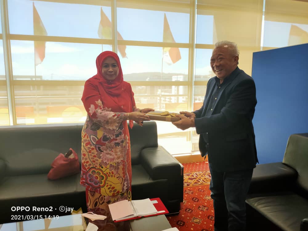 KOTA KINABALU: Timbalan Ketua Menteri yang juga Menteri Kerja Raya Dato Sri Bung Moktar Radin pagi Isnin menerima kunjungan hormat Setiausaha Politik Menteri Pengajian Tinggi Datin Maizatul Akmam Alawi @ Ad Badawi di pejabat Umno Sabah.