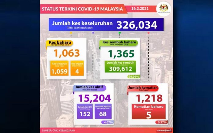 Health director-general Tan Sri Dr Noor Hisham Abdullah said that of today’s total, four were imported cases infected abroad while 1,059 were local transmissions.