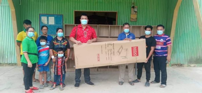 Beliau kemudian berkunjung ke kampung Kuala Biah bagi menyampaikan sumbangan enam meja dan tiga rak buku untuk kegunaan penganut SIB di kampung tersebut.