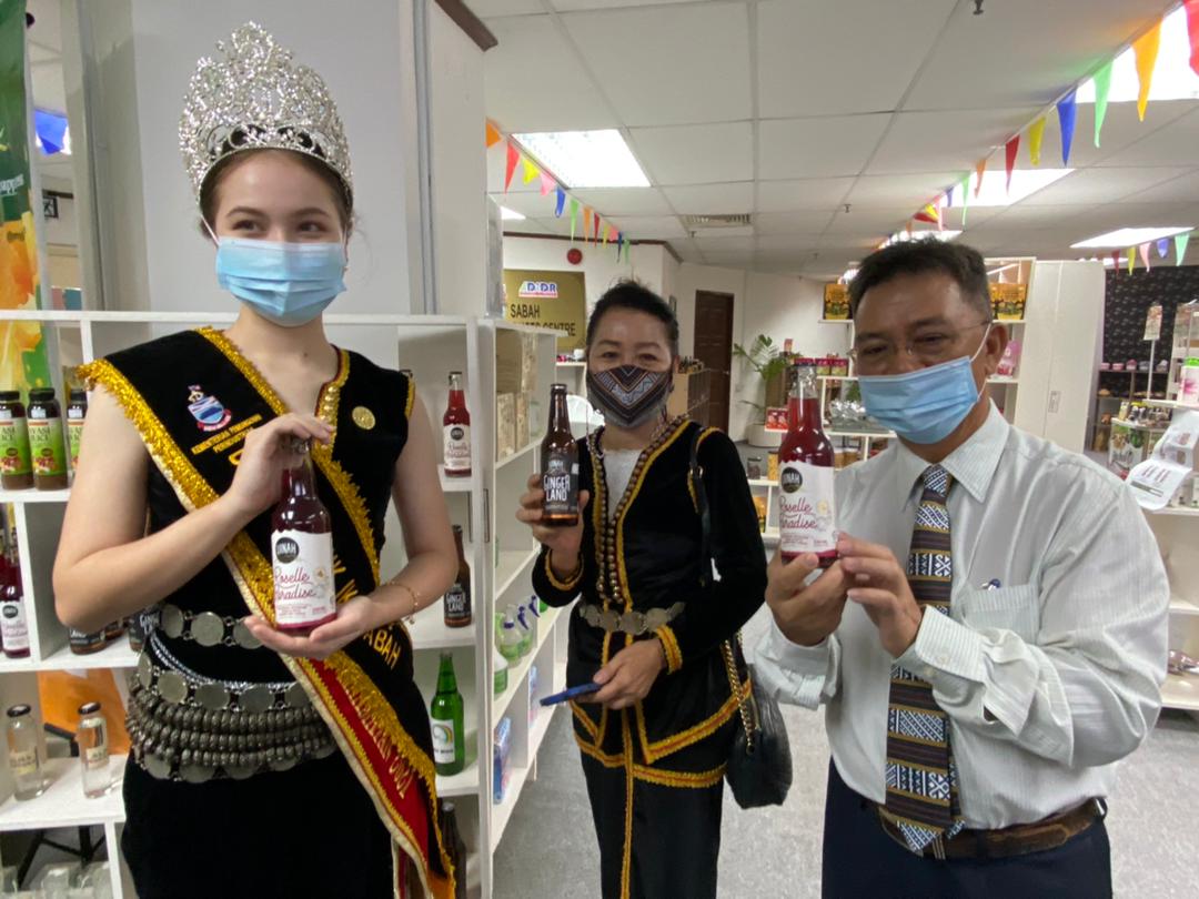 Turut hadir ialah Pembantu Menteri Pembangunan Perindustrian Yang Berhormat, Tuan Tamin Zainal; Setiausaha Tetap Kementerian Pembangunan Perindustrian; Thomas Logijin dan dan Pengerusi Unduk Ngadau Kaamatan 2021, Joana Datuk Kitingan.