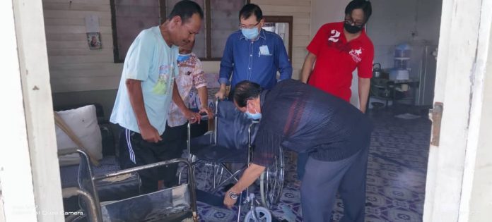 Sempena lawatan itu, Mositun telah menyampaikan sumbangan kerusi roda dan bakul makanan kepada Masilus@Chining Ferdinand yang mengidap penyakit angin ahmar.