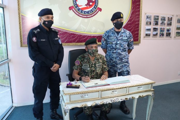 Turut hadir dalam lawatan tersebut Ketua Staf Operasi Udara ESSCOM Brig. Jen Ayub Khan Mohd Khan dan Ketua Staf Pasukan Khas ESSCOM SAC Ali Tamby.