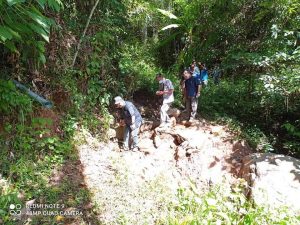 Untuk melihat sendiri keadaan jalan, Ellron bersama rombongan berjalan kaki sekitar 1.5 KM melalui denai yang berlumpur dan berbahaya memandangkan jalan tersebut terletak di tebing sungai serta curam.