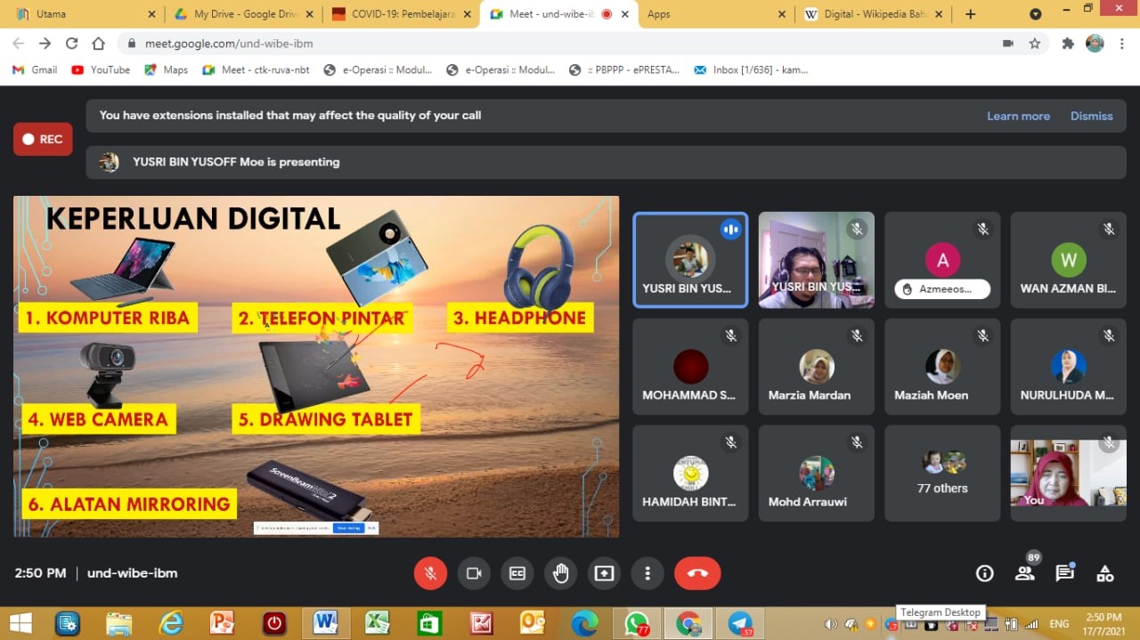 LABUAN: Jawatankuasa Task Force Pendidikan Islam SPM dengan kerjasama Sektor Pendidikan Islam (SPI), Jabatan Pendidikan Wilayah Persekutuan Labuan (JPWPL) berjaya menganjurkan Bengkel Integrasi Digital Dalam Pengajaran dan Pembelajaran (PdP) Pendidikan Islam secara dalam talian yang diadakan pada Sabtu lalu.