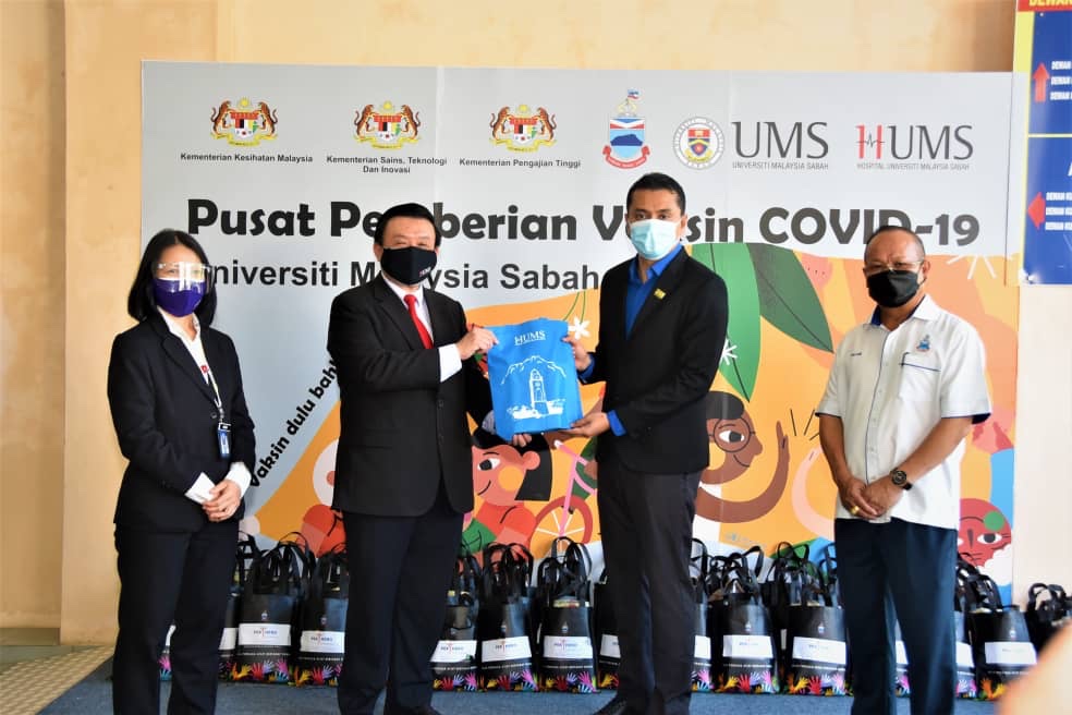 KOTA KINABALU: Kementerian Belia dan Sukan Sabah (KBSS) menghulurkan sumbangan sebanyak 160 set ‘Pek Hero’ kepada petugas barisan hadapan di Pusat Pemberian Vaksinasi Insititusi Pengajian Tinggi Universiti Malaysai Sabah (PPV IPT-UMS).