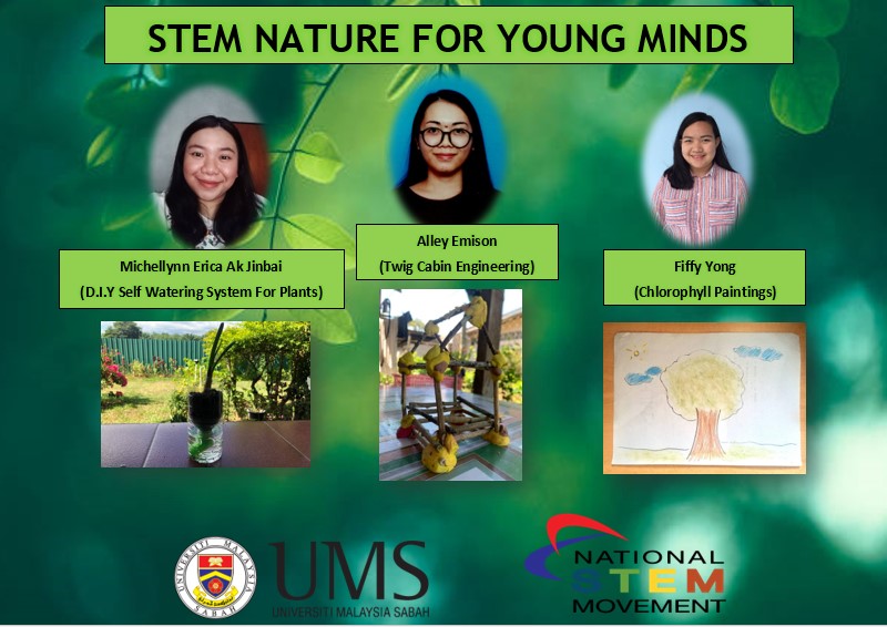 Sementara itu, STEM Nature for Young Minds yang dihasilkan Erica Jinbai, Alley Emison dan Fiffy Yong (Program Pendidikan Awal Kanak-Kanak, UMS), memberikan contoh pembelajaran STEM yang boleh diaplikasi kepada kanak-kanak semasa pandemik Covid-19.