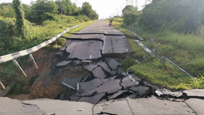 Timbalan Ketua Menteri Datuk Seri Bung Moktar Radin berkata, kebanyakan jalan berturap yang runtuh dalam kejadian kemarin adalah dibawah kendalian pihak konsesi yang telah dilantik oleh kerajaan dan pihak mereka telah pun diarahkan untuk memperbaikinya segera.