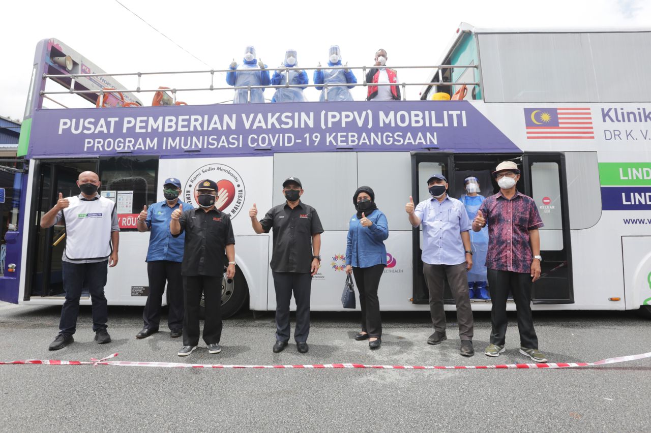 KAMPUNG RAJA (Pahang): Menteri Pertanian dan Industri Makanan Datuk Seri Dr. Ronald Kiandee turun padang bagi melihat sendiri operasi Pusat Pemberian Vaksin Industri Bergerak (Mobile PPVIN) di bawah Program Vaksinasi Barisan Hadapan Industri Agromakanan (AiVAC) yang bertempat di Dewan Serbaguna Kg. Raja, Cameron Highlands, hari ini.