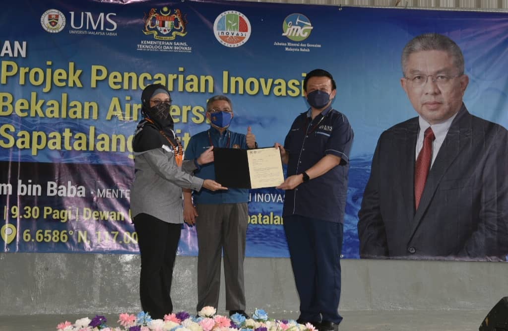 YB Dato’ Sri Dr. Adham Baba berkata, “MOSTI komited dalam membangunkan inisiatif pencarian air menggunakan teknologi inovatif yang berfokuskan rakyat bertujuan untuk meningkatkan kesejahteraan hidup rakyat secara inklusif terutama penduduk luar bandar dan terpinggir. Melalui projek ini, YIM dan UMS telah mengenalpasti masalah utama bekalan air bersih yang dihadapi oleh penduduk kampung yang disebabkan oleh punca mata air yang sering tersumbat. Projek Pencarian Inovasi berasaskan bekalan air bersih ini melibatkan inovasi teknologi kejuruteraan dan sosial