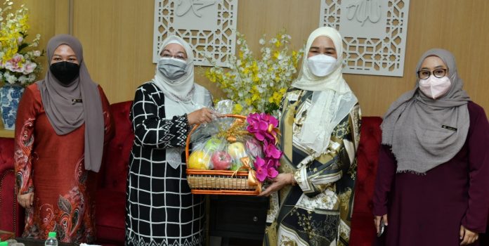 KOTA KINABALU: Isteri Ketua Menteri, Datin Seri Panglima Hajah Juliah Salag, yang juga Yang Dipertua Pertubuhan Muafakat Titipan Amal Isteri Wakil Rakyat, Gabungan Rakyat Sabah (MUTIARA GRS), menerima kunjungan hormat daripada rombongan daripada Yayasan Kebajikan Sabah di Rumah Yayasan, di sini pada Selasa.