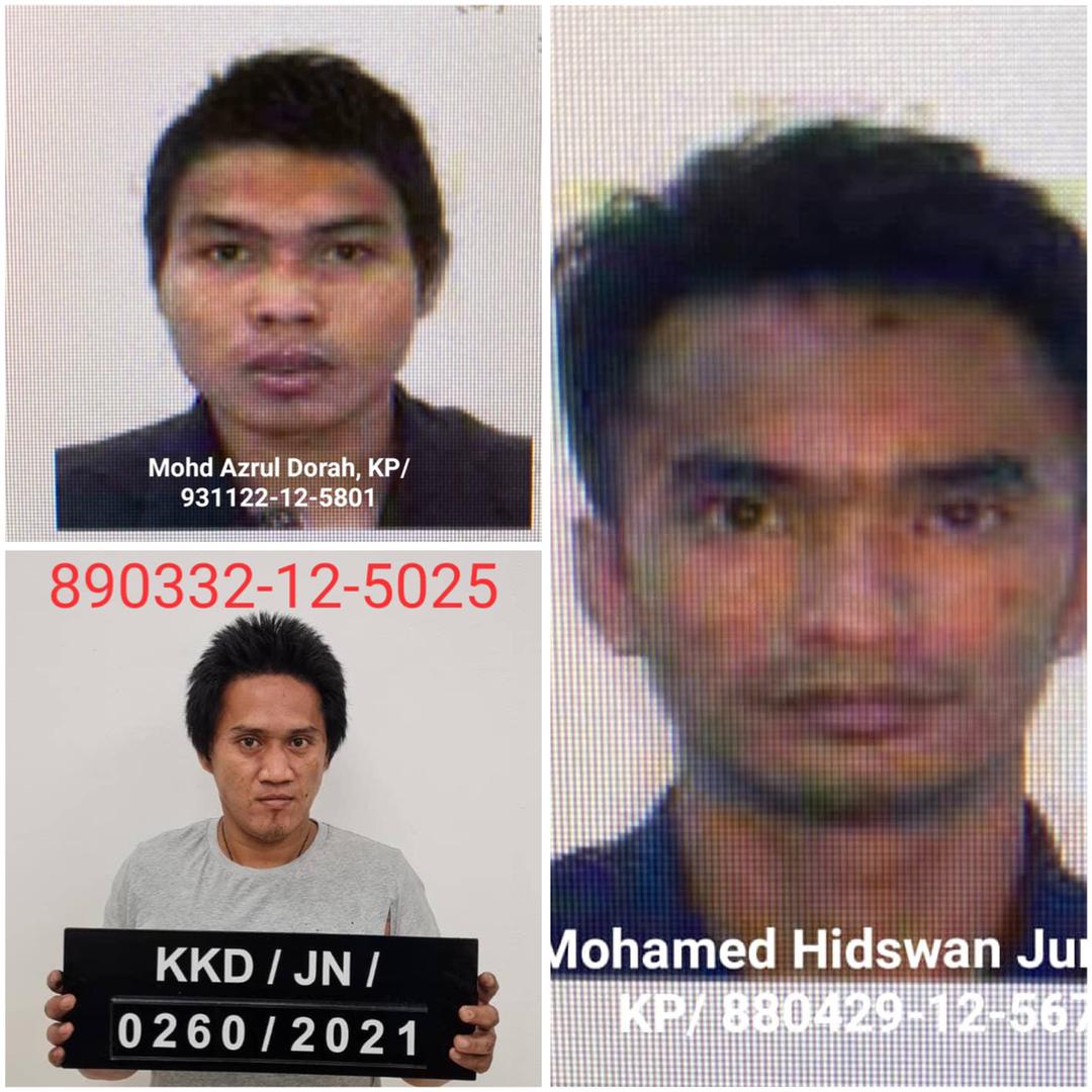 Ketua Polis Daerah Kota Kinabalu, ACP Mohd Zaidi Abdullah, dalam satu kenyataan, berkata dalam kejadian sekitar jam 10.30 pagi itu, tiga suspek dikenali sebagai Mohd Azrul Dorah, 28, Mohamed Hidswan Jumalti, 34, dan Mohammad Sobrie Muali, 32, melarikan diri dengan memanjat tembok di belakang Wad 7, Dometry A CPC, Hospital Mesra Bukit Padang.