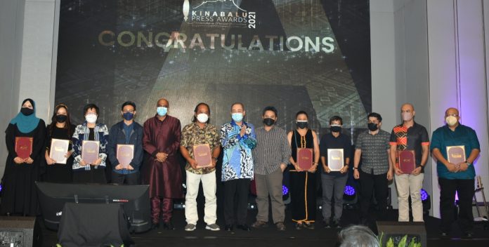 Later, the Chief Minister accompanied by SJA President Datuk Muguntan Vanar presented the prizes to winners of this year’s Kinabalu Press Award.