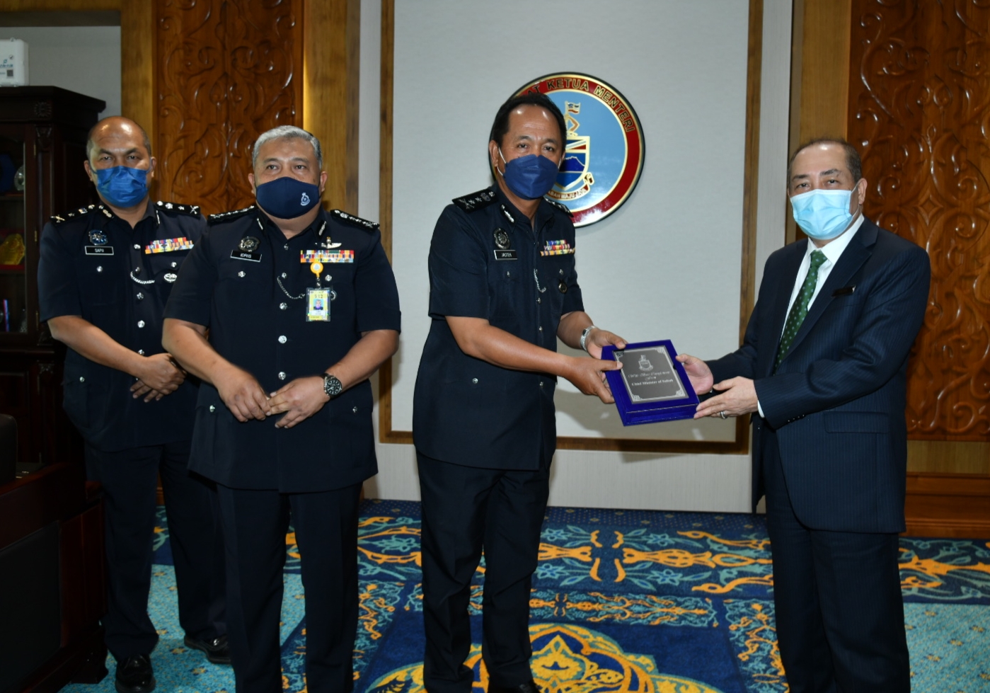 KOTA KINABALU: Sabah Commissioner of Police Datuk Idris Abdullah formally introduced his newly appointed deputy, Datuk Jauteh Dikun to Chief Minister Datuk Seri Panglima Haji Hajiji Haji Noor at Menara Kinabalu, near here on Wednesday.