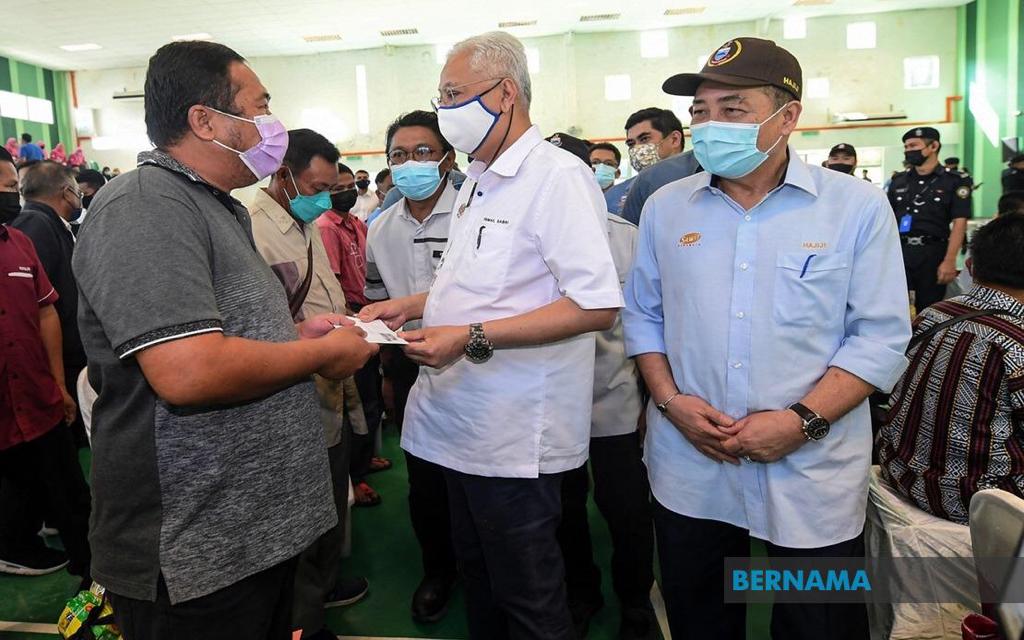PITAS: Prime Minister Datuk Seri Ismail Sabri Yaakob today handed over Bantuan Wang Ihsan (BWI) of RM1,000 and food baskets to flood victims in this district at Dewan Masyarakat Majlis Daerah Pitas here.