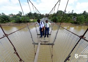 Jambatan gantung menjadi penghubung penting di kawasan luar bandar Sabah bagi memudahkan penduduk menyeberangi sungai termasuk untuk kemudahan murid dan pelajar ke sekolah.