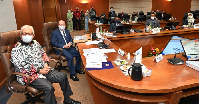 KUALA LUMPUR: Ketua Menteri, Datuk Seri Panglima Haji Hajiji Haji Noor bersama Menteri Dalam Negeri, Dato Sri Hamzah Zainudin mempengerusikan Mesyuarat Jawatankuasa Induk Pengurusan Warga Asing Di Sabah (JKPWAS – INDUK) di Kementerian Dalam Negeri (KDN) di Putrajaya, hari ini.