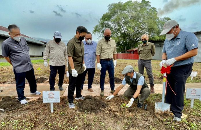Dr. Joachim turut merasmikan program penanaman pokok yang dianjurkan oleh Persatuan Perusahaan Kayu-Kayan Sabah. (STIA).