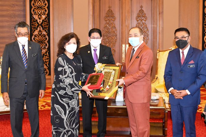 Malaysia Public Service Director-General Datuk Seri Mohd Shafiq Abdullah introduced Sarul Bahiyah, formerly the Undersecretary, Ministry of Health to Chief Minister Datuk Seri Panglima Haji Hajiji Haji Noor during a courtesy call at Menara Kinabalu near here today.