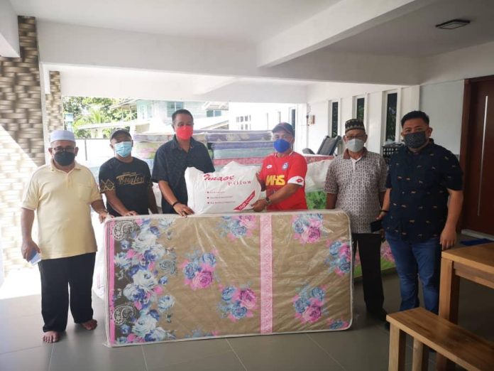 KUALA PENYU: Umno bahagian Beaufort menyumbang beberapa keperluan berupa tilam bantal dan selimut untuk diagihkan kepada mangsa 52 orang ketua isi rumah yang terlibat dengan musibah banjir di kampung Kerukan dekat sini baru baru ini.