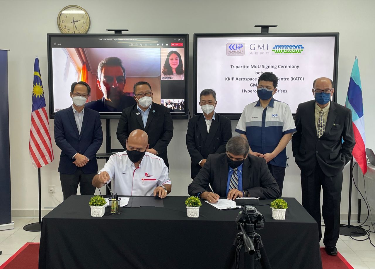 Today, KATC had signed a Tripartite Memorandum of Understanding with GMI AERO SAS France and Hypercoat Sdn. Bhd. at KKIP Aerospace Training Centre facility in Sepanggar. It was witnessed by Deputy Chief Minister and Minister of Industrial Development Sabah, YB Datuk Dr Joachim Gunsalam.