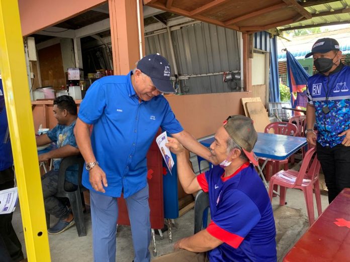 PASIR GUDANG: Menjelang pembuangan Undi esok (12 Mac ) Pengerusi Barisan Nasional Sabah Datuk Seri Panglima Bung Moktar Radin bersama jentera melakukan pacutan akhir turun padang menemui pengundi dan Penduduk di Pusat Daerah Mengundi (PDM) Senibong dalam kawasan DUN Permai.