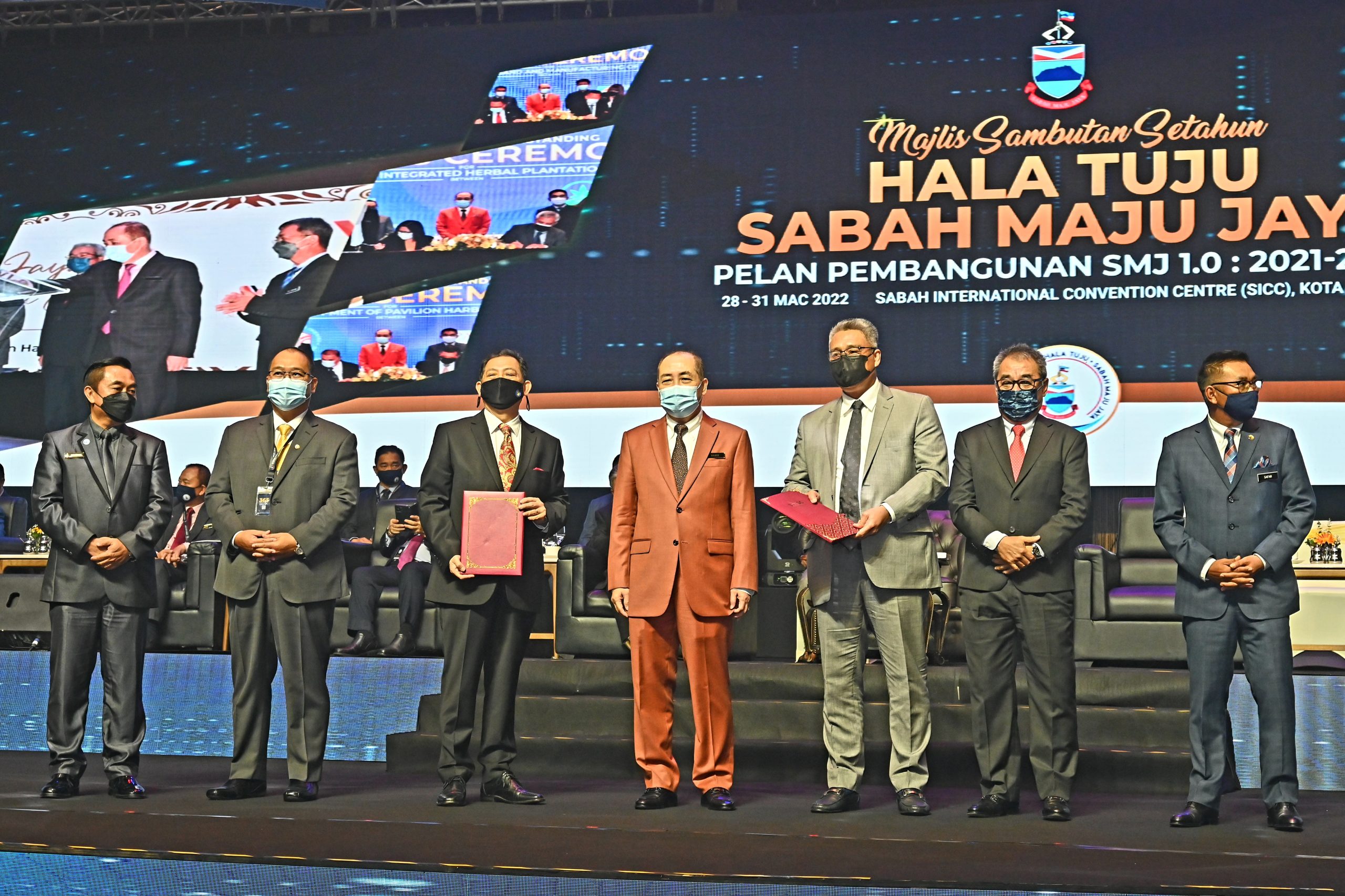 KOTA KINABALU: Ketua Menteri, Datuk Seri Panglima Haji Hajiji Haji Noor menyaksikan Majlis Menandatangani Memorandum Persefahaman (MoU) diantara Sabah Oil & Gas Development Corporation Sdn Bhd (SOGDC) dan ADSI Engineering Sdn.Bhd bagi membangun gas power plant di Sipitang Oil and Gas Industrial Park (SOGIP) sempena Majlis Sambutan Setahun Hala Tuju Sabah Maju Jaya (SMJ) di Sabah International Convention Centre (SICC), hari ini.