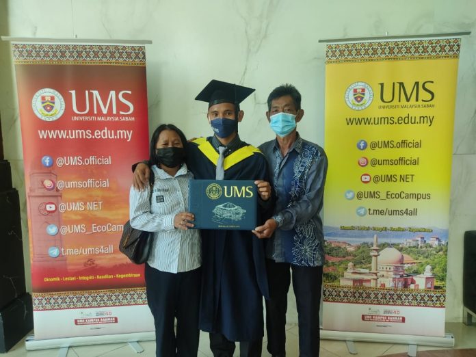 “Saya sangat bangga melihat semangat dan keteguhannya untuk menamatkan pengajian di UMS ini. Dia adalah contoh baik yang boleh menjadi inspirasi adik-adiknya walaupun kami berasal dari keluarga yang kurang berkemampuan,” tambahnya.