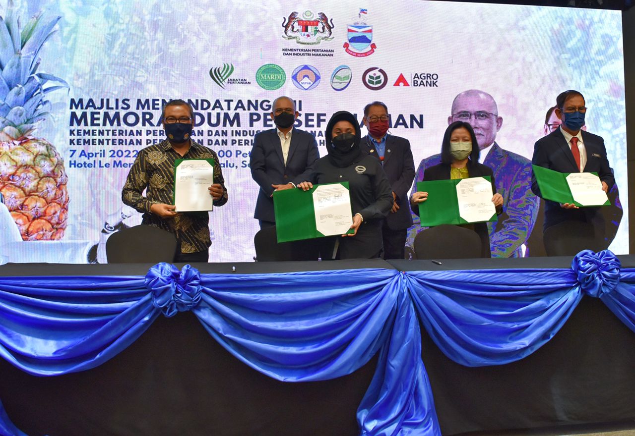 KOTA KINABALU: Kementerian Pertanian dan Industri Makanan (MAFI) dan Kementerian Pertanian dan Perikanan Sabah (MAFS) di sini hari ini menandatangani tiga Memorandum Persefahmaan (MoU) bagi menjadikan sektor agromakanan sebagai pemacu pertumbuhan ekonomi dan meningkatkan kesejahteraan rakyat di negeri ini.