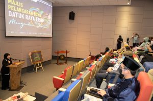 KOTA KINABALU: Sebuah buku terbitan Universiti Malaysia Sabah (UMS) bertajuk ‘Mengimbau Dunia’ Koleksi Datuk Raya Erom dilancarkan di Galeri Azman Hashim (GAH), di sini, kelmarin.