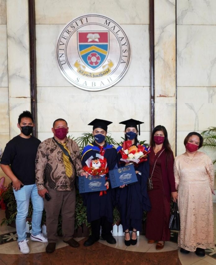 Kedua-dua mereka menamatkan pengajian tersebut menerusi Pusat Luar UMS (PLUMS) cawangan Tawau.