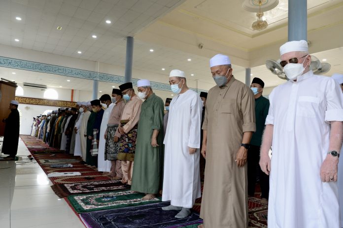 Terdahulu, Ketua Menteri menunaikan solat sunat Aidiladha di Masjid Haji Noor Kampung Serusop, Tuaran bersama penduduk di sekitar kampung berkenaan.