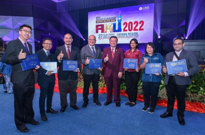 KOTA KINABALU: Seramai 555 kakitangan dan pesara Universiti Malaysia Sabah (UMS) diraikan dalam Anugerah Kecemerlangan UMS (AKU) 2022 yang berlangsung di Dewan Resital, di sini, hari ini.