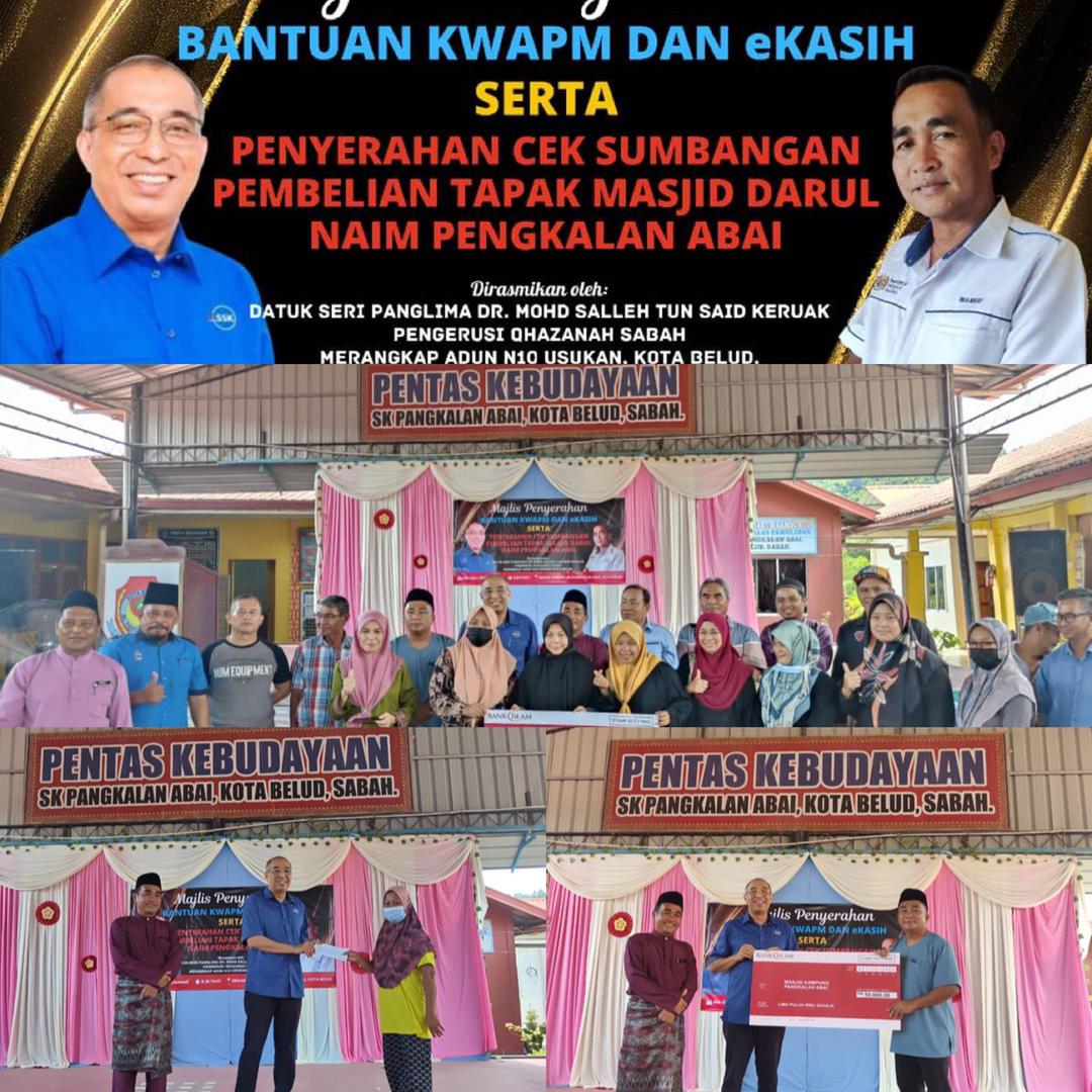 Adun Usukan Datuk Seri Dr Salleh Said Keruak hari ini menghadiri Majlis Penyerahan Bantuan KWAPM Dan eKasih serta Penyerahan Cek Sumbangan Pembelian Tapak Masjid Darul Naim Pengkalan Abai di Dewan Terbuka Sk Pangkalan Abai, Kota Belud.