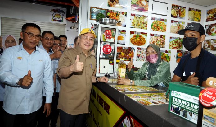 Earlier, the Chief Minister went on an impromptu walkabout to greet and distribute the Sayang cooking oil to food hawkers operating at Anjung Selera.