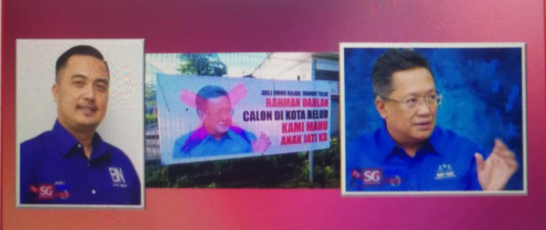 Banner provokasi itu menyebut “Ahli Umno Bajau, Iranun Tolak Rahman Dahlan Calon Di Kota Belud, Kami Mahu Anak Jati KB” di gantungkan di sebuah lokasi dipercayai di sekitar Kg Pirasan, Kota Belud turut terpapar di media sosial Facebook, mengundang berbagai reaksi warganet.