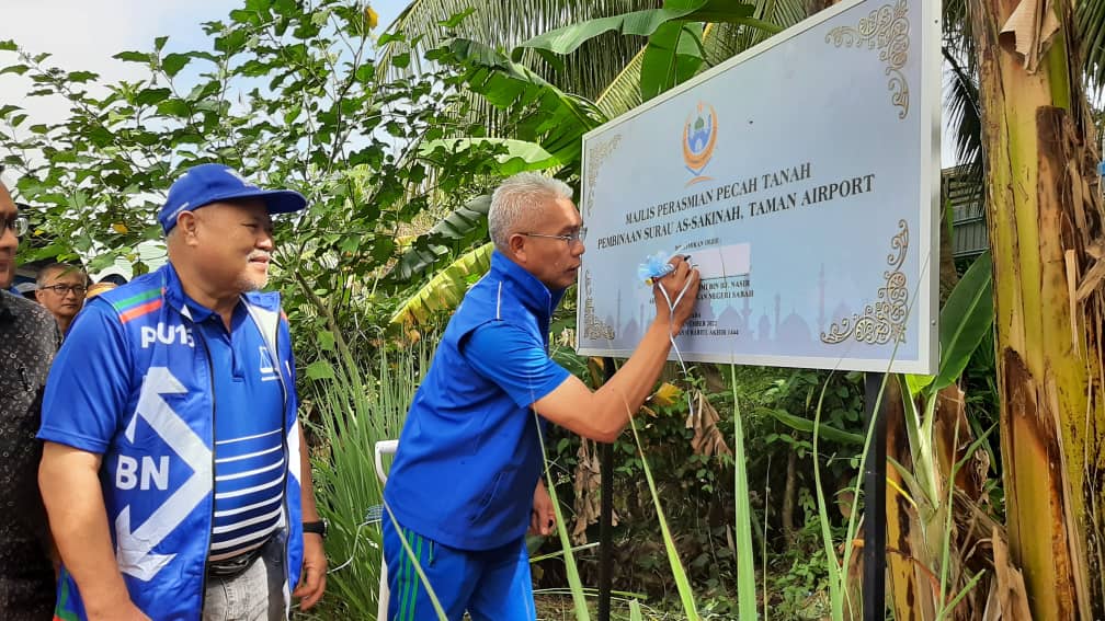 SANDAKAN : Pembinaan Surau As-Sakinah bakal memanfaatkan kira-kira 1,000 penduduk beragama Islam di Taman Airport, Batu 7.