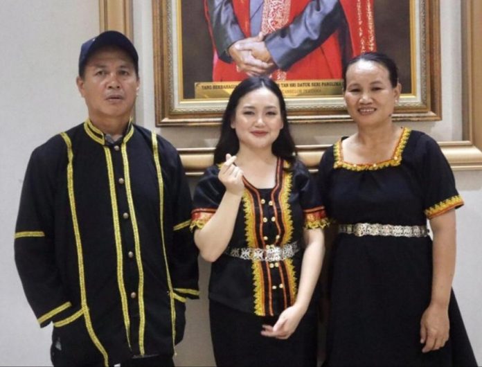 Beliau yang berasal dari Keningau ditemani ibu bapa yang turut lengkap memakai busana etnik yang sama.