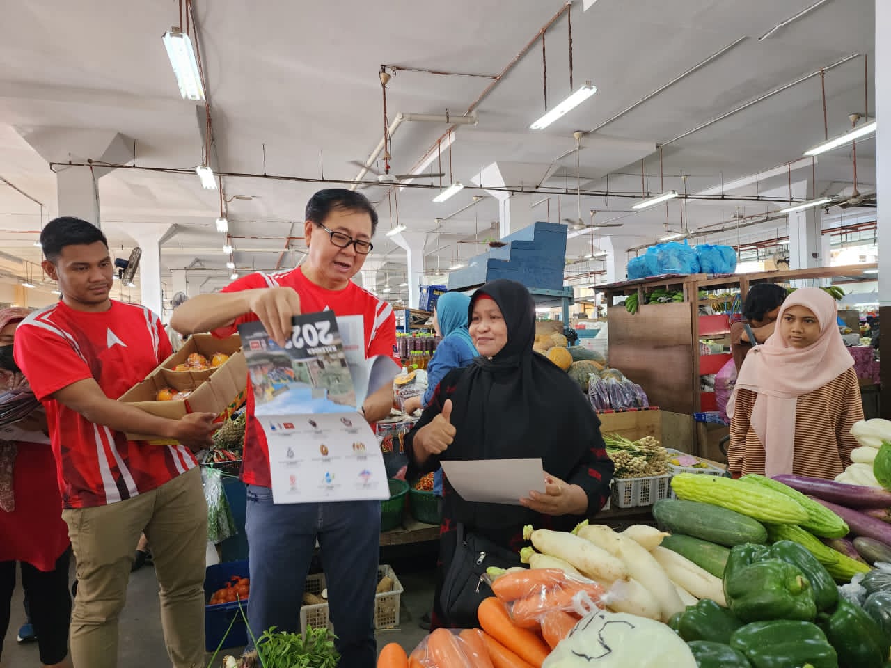 SANDAKAN: Pagi Sabtu, saya bersama dengan pasukan saya telah mengunjungi Pasar Umum Sandakan untuk mengedarkan kalender tahun baharu ini dengan mandarin oren bagi menyambut sempena Tahun Baru Cina yang bakal tiba.