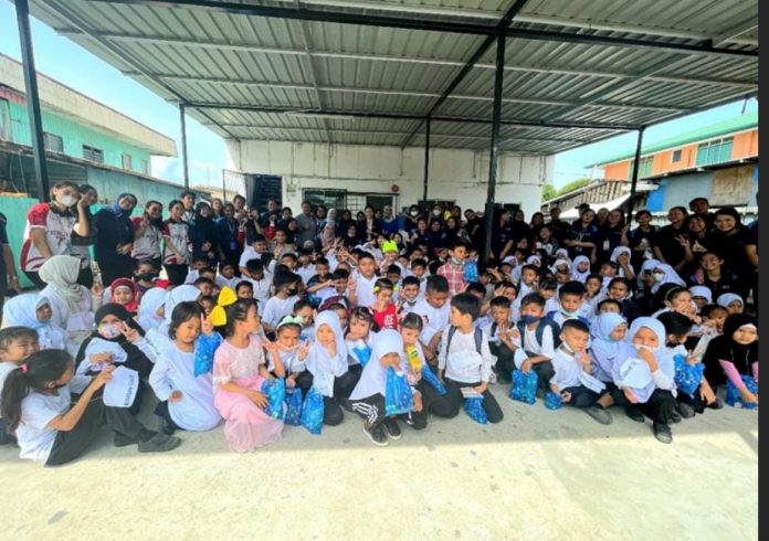 KOTA KINABALU:Seramai 50 mahasiswa Kursus Pendidikan dengan TESL, Fakulti Psikologi dan Pendidikan (FPP) Universiti Malaysia Sabah (UMS) menyertai Program Khidmat Masyarakat (CSR) di Pusat Tuisyen Raisul, Kalasanan Inanam, di sini, baru-baru ini.