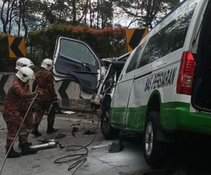 Pahang Fire and Rescue Department director Wan Mohammad Zaidi Wan Isa said during the 1.15pm incident, the van with 14 passengers on board was descending from Genting Highlands.