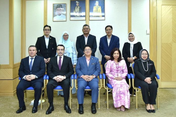 PUTRAJAYA: Menteri Pembangunan Usahawan dan Koperasi Datuk Ewon Benedick menerima kunjungan hormat daripada Duta Besar Republik Demokratik Rakyat Algeria ke Malaysia, Saad Maadi di pejabat menteri, di sini, semalam.