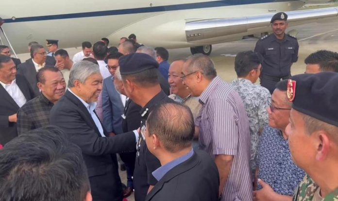 KOTA KINABALU : Presiden UMNO yang juga Timbalan Perdana Menteri Datuk Seri Dr Ahmad Zahid Hamidi tiba di Lapangan Terbang Antarabangsa Kota Kinabalu petang tadi untuk lawatan kerja sehari ke Sabah.