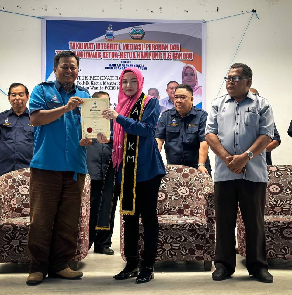 Beliau berkata demikian semasa Taklimat Integriti, Mediasi, Peranan dan Tanggungjawab Ketua-Ketua Kampung N.6 Bandau di Dewan PPR Taman Korongkom Jaya, Kota Marudu semalam. Dalam majlis itu, penduduk setempat turut diberikan bantuan barangan makanan oleh Redonah.