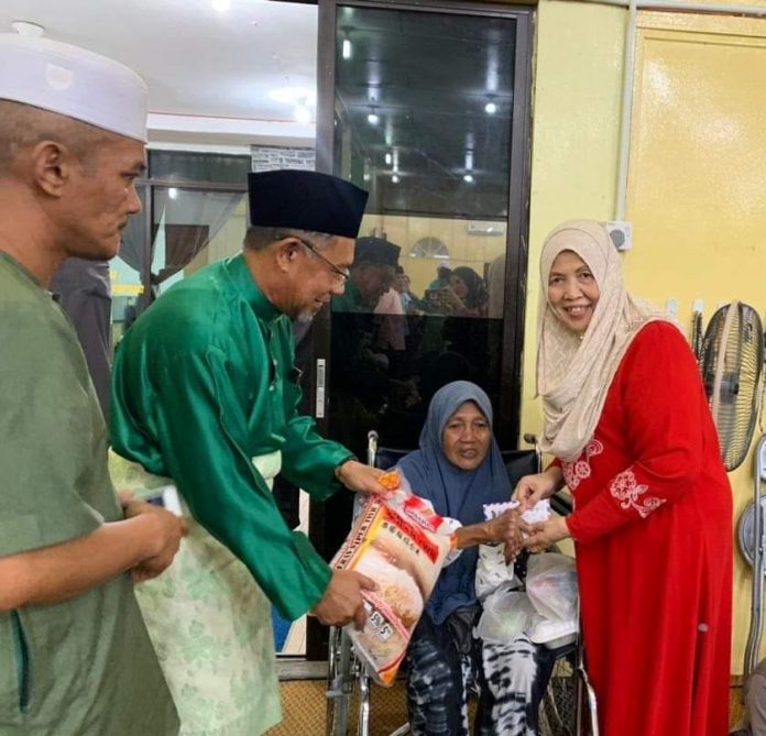 Pada majlis tersebut Siti Aminah juga turut berbuka puasa bersama masyarakat Islam setempat menyampaikan sumbangan kepada 119 orang golongan asnaf dab sumbangan duit raya untuk kanak-kanak.