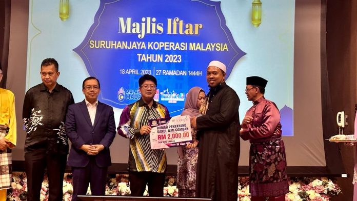 KUALA LUMPUR: Suruhanjaya Koperasi Malaysia (SKM) menyampaikan sumbangan zakat sebanyak RM10,000 kepada lima buah rumah anak yatim sekitar Kuala Lumpur dan selangor, sempena Majlis Iftar SKM, di Menara SKM, di sini, semalam.